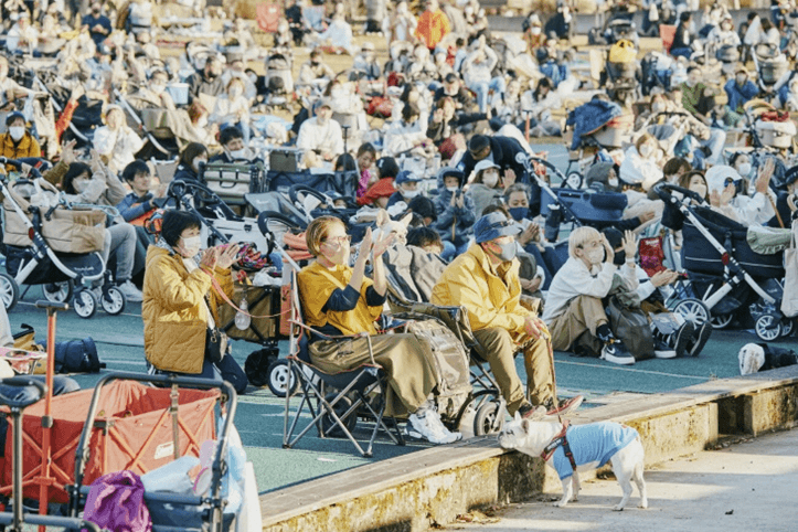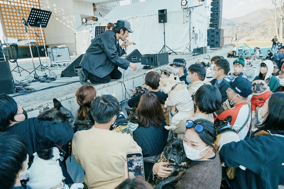 「French Bulldog LIVE 2022-秋-(フレブルLIVE)」は国内初の、愛犬とオーナーが一緒に楽しめる「エンターテイメント型」野外イベントです。ステージでは、フレンチブルドッグとゆかりのあるコンビ芸人「カミナリ」のお二人を司会者に迎え、元フレブルオーナーのスチャダラパーさんの御三方や、大の犬好きシンガーソングライターの七尾旅人さんが、愛犬と音楽を楽しむ「FES time」を彩り、イベントを盛り上げました。