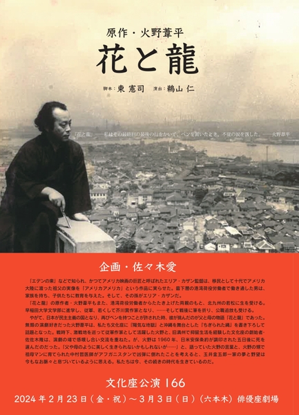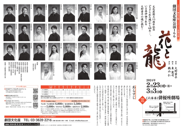 劇団文化座公演166『花と龍』が2024年2月23日 (金・祝) ~2024年3月3日 (日)に俳優座劇場(東京都港区六本木4-9-2)にて上演されます。