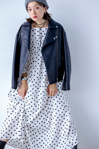 スクエアネックのデコルテラインが大人っぽくて女性らしいドット柄ワンピースです。コンパクトなヨーク切り替えからふわっと広がる袖と身頃の雰囲気と、メリハリのあるシルエットが相まって、大人な可愛いワンピースです。ストライプ状の凹凸感のあるドビー組織のソフトなコットン素材にドット柄プリントを載せることで、より奥行きと立体感のある印象とハンドクラフト感漂う温かみのあるアイテムに仕上がりました。袖をたくし上げてボリュームを出す着こなしや、秋にはブーツと合わせたりして季節ごとの着こなしを楽しめます。ご自宅でお洗濯が可能です。