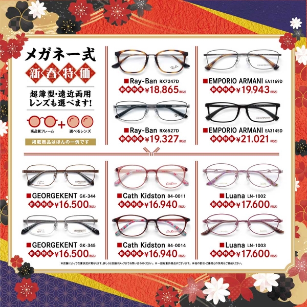 キャンペーン内容:新春スピードくじ、メガネ一式新春特価