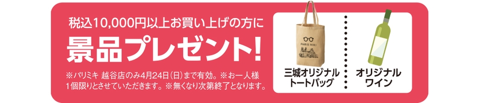 OPEN記念としまして、税込10,000円以上お買い上げの方に、オリジナルの「トートバッグ」または「ワイン」のどちらか1つをプレゼントいたします!※無くなり次第終了となります。
