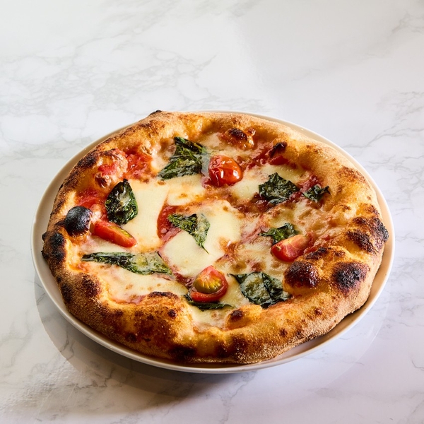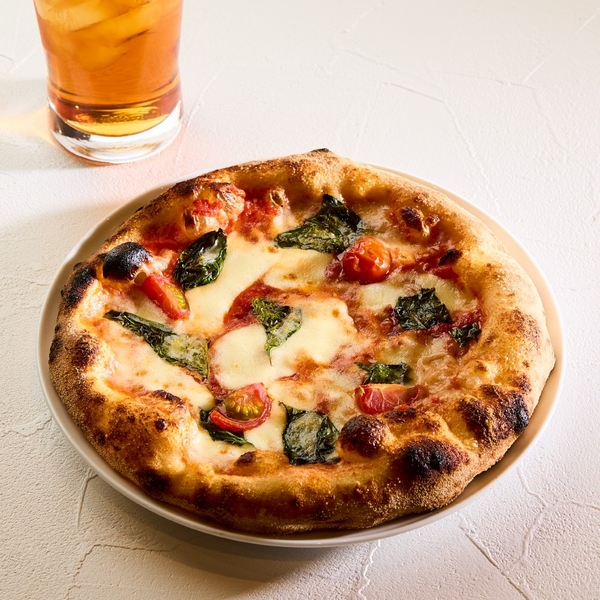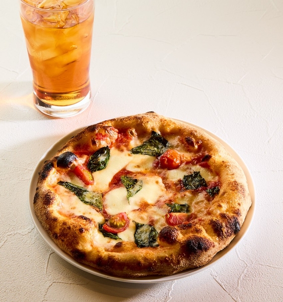 北海道産モッツァレラチーズとピザに合うように厳選したトマトを使用。ご注文を受けてから手伸ばしした記事を高温釜で焼き上げる、ふっくらもちもちの生地が特徴のこだわりのピザです。
