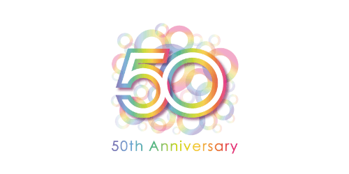 周年事業を象徴する、創立50周年記念ロゴを制作。レインボーカラーの無数の輪が集まり「50」を形成するデザインは、一人ひとりの多様なはたらき方・生き方を応援する同社の想いを象徴しています。「50」に集まる無数の輪は、さまざまな価値観をもった人を表しており、同社がその人たちを社会と結びつけ、その人の価値を生かし明るい未来社会を創っていく姿を表しています。周年記念ロゴは、社内外のさまざまな施策に展開しました。