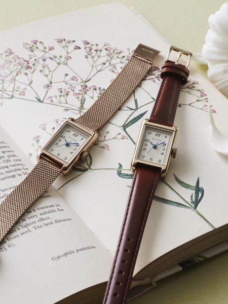 縦29mm×横18mmのコンパクトなレクタングルケースに、日本製のクオーツムーブメントを搭載。品質にもこだわり、幅広い年代の方にお楽しみいただける腕時計として完成しました。