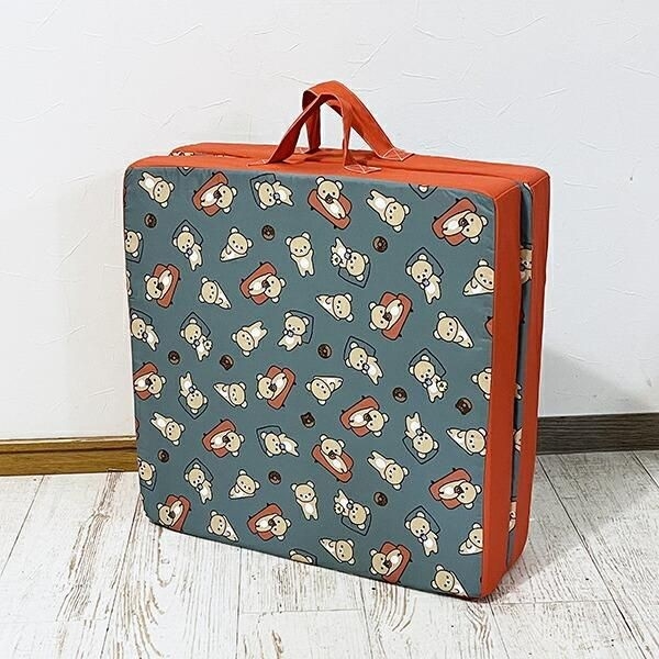 畳んでコンパクト、持ち手もついているのでなにかと持ち運びに便利です。畳んだ際にもリラックマのキュートなデザインがみえるので、置いておくだけでもかわいいインテリアになりそうです。サイズ:100cm×50cm×8cm 素材:ポリエステル