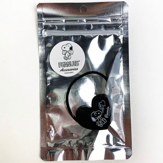 ゴムでまとめる際に便利な、スヌーピーのヘアブラシもご紹介♪シックな黒に、スヌーピーとベルの顔がデザインされています。持ち手も握りやすいフォルムと長さです。