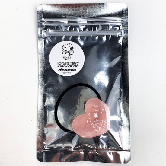 まずは、キュートなピンクのハートのヘアゴムです。絶妙な色合いのピンクにスヌーピーの嬉しそうな表情がデザインされています。ハートもついていますね♪3.6×4.4cmサイズで、素材はアクリルです。ちょっと髪をまとめるだけでも、雰囲気が変わって見えますよ♪