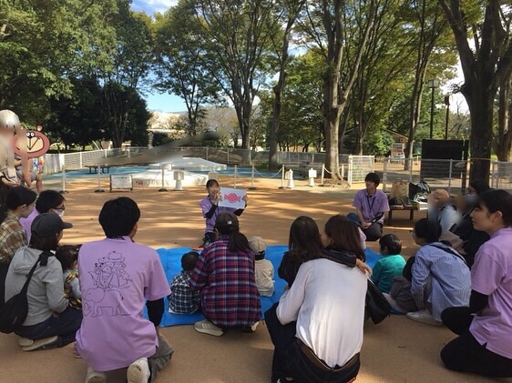 府中の森公園の遊具広場は、令和3年10月に「誰もが楽しめる遊具広場」としてリニューアルオープンし、たくさんの方にご利用いただいています。その一方で、利用を希望する方々から、「公園にでる勇気が出ない」「うちの子が受け入れられるか心配」といったお声があがっていることも事実です。不安を持っておられる方々が来園するきっかけとなり、公園に通いやすくなるようになってほしいという思いから、府中の森公園では「にじのかけはしプロジェクト」として、地域の方やボランティア団体にもご協力いただき、手遊びや絵本の読み聞かせなどを通して、みんなで遊び、保護者同士をつなげる交流の機会を創出していくことを目標としています。