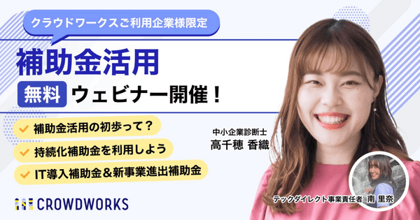 開催内容:【補助金を味方に、事業の成長を加速!クラウドワークス利用企業向け無料ウェビナー】