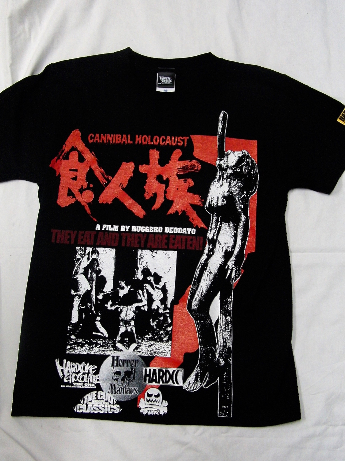 有限会社ハードコアチョコレート(本社:東京都中野区、取締役:宗方 雅也、以下 ハードコアチョコレート)は、株式会社ハピネット(本社:東京都台東区、代表取締役社長:石川 徹郎、以下 ハピネット)と、往年の名作ホラー映画が、ニューマスター&コレクターズ仕様で蘇る、傑作ホラーコレクション「ホラー・マニアックス・シリーズ」とのコラボレーションとして、1983年、世界中に衝撃をあたえた映画が日本で公開され、恐怖におののいたトラウマとも言える伝説的作品、「食人族 -製作35周年記念HDリマスター究極版-」の発売を記念し『食人族』とのコラボレーションTシャツを発売いたしました。