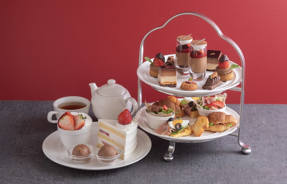 2月のアフタヌーンティーのテーマは「Chocolate Noir」。チョコレートをムースやヴェリーヌ、タルトなど様々な味わいをご提案。