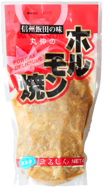 南信州飯田の味として30年以上続くソウルフード「丸伸ホルモン」。信州飯田では言わずと知れた「通」の逸品です。豚モツをやわらかくボイルし、信州味噌をベースとした秘伝のタレで味付けしてあります。濃いめの味付けでお酒のおつまみに最適!フライパンで焼いて食べるのがスタンダードですが、お鍋で煮込んでモツ煮込みとしても美味しくお召し上がりいただけます。