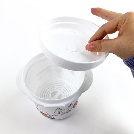 インスタントのラーメンを水と一緒に容器に入れ、レンジでチンするだけでラーメンの出来上がり♪フタには湯切り用の穴も開いているので焼きそばなどにも応用できますし、野菜を茹でることもできちゃいます。