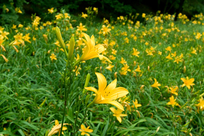 北海道、本州(中部以北)の亜高山帯の湿り気がある草原に生える多年草です。尾瀬や霧ヶ峰の群落が有名で、高さは40~70cmになります。花は一日花で、朝開いて夕方には閉じてしまいますが、一本の茎にたくさんの蕾をつけ、それが次から次へと咲くために、全体としては長い期間楽しむ事ができます。
