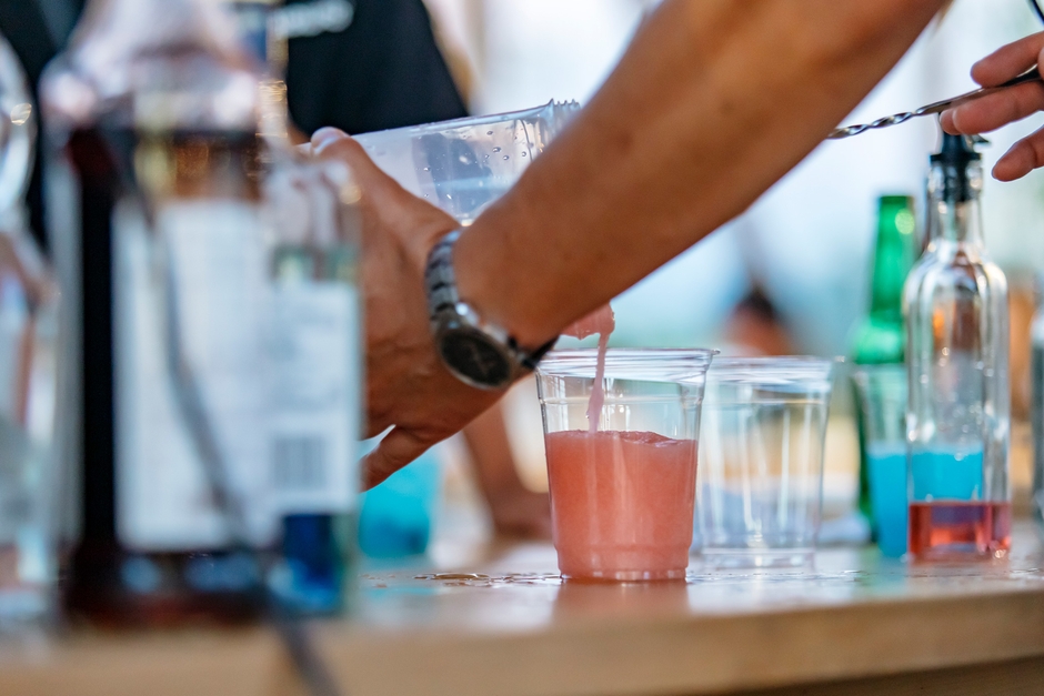 生ビール、チューハイ各種、ハイボール、グラスワイン(赤・白)、サングリア、焼酎(芋/麦)、ソフトドリンク各種、ノンアルコールビール、カクテルメニュー各種、ジントニック、モスコミュール、ファジーネーブル、カシスオレンジ、テキーラコーク、スクリュードライバー、ラムコーク、テキーラサンライズ、ピーチウーロン etc