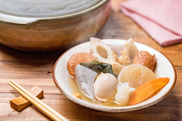 また、おでんだけではビタミンや炭水化物などの栄養素が不足しがちになるため、主菜・副菜のバランスを考えて摂取しましょう。