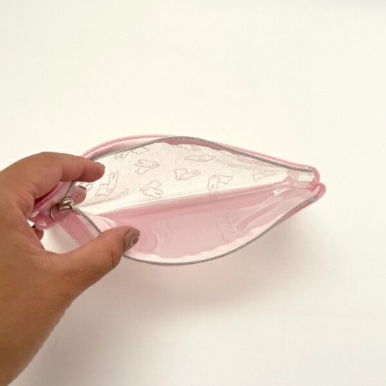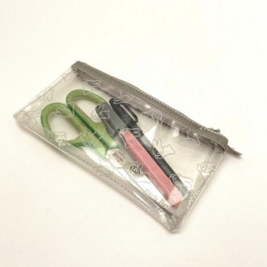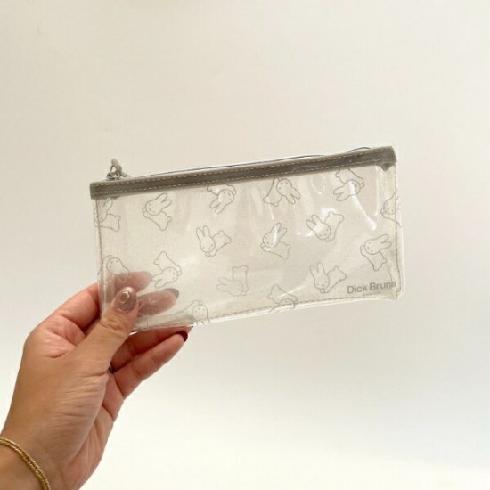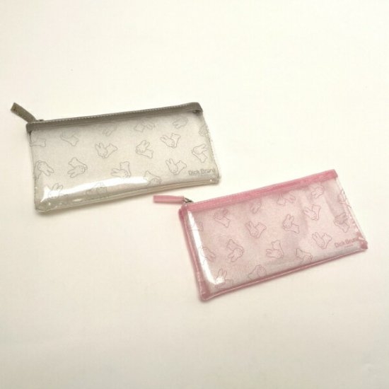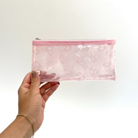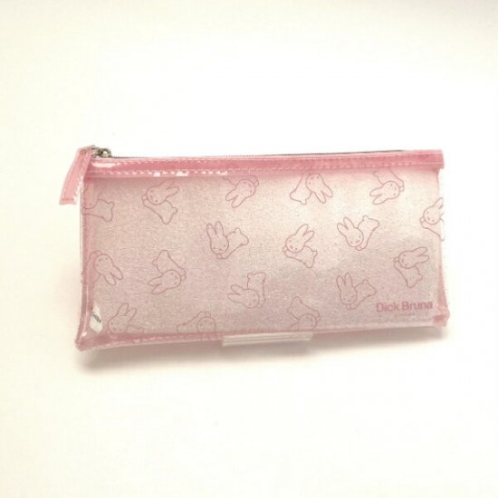 こちらはミッフィーのクリアペンポーチです♪表面がキラキラとしており、女心をくすぐります。うさぎシリーズのミッフィーが可愛いペンケースとなっております♡サイズは縦10×横20×厚み1.5cmです。
