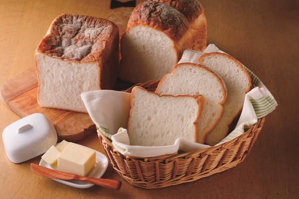 「角型」は型の蓋をして焼くため水分の蒸発が少なくきめの細かいしっとり・もっちりとした食パンです。そのままやサンドイッチにおすすめです。
