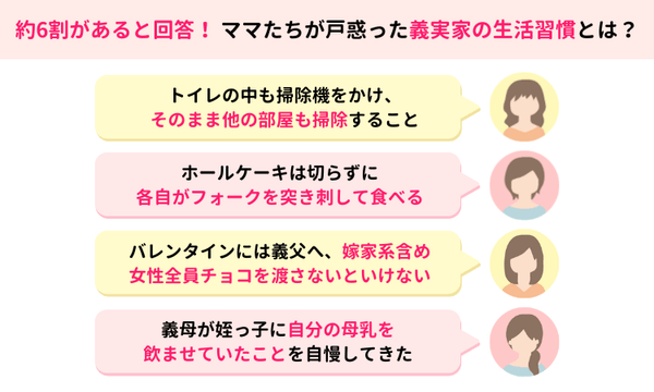 <義実家の生活習慣に「驚いた」ママは6割超>
