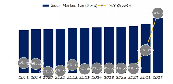 図. 重水の世界市場規模(百万米ドル)、2018~2029年