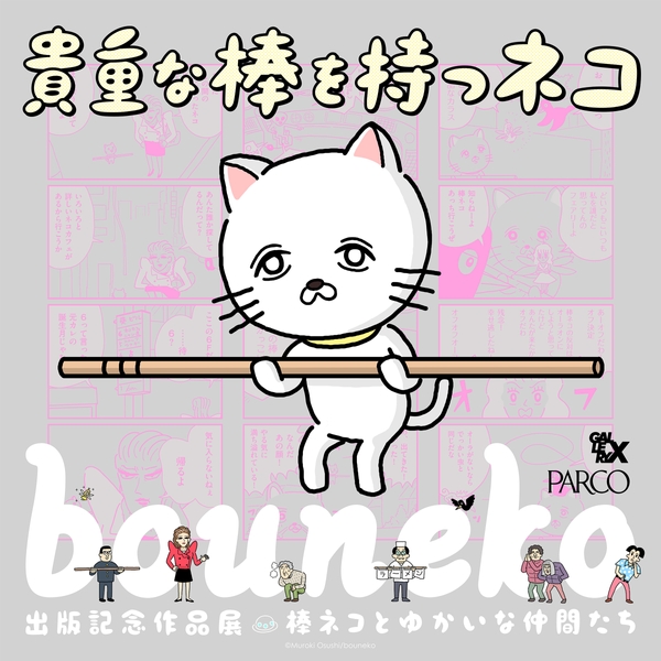 イラストレーターで漫画家の室木おすしによるTwitter漫画「貴重な棒を持つネコ」が今月23日株式会社KADOKAWA(東京都千代田区)より出版されることを記念して、この度、編集協力をしている株式会社ディレクションズ(東京都渋谷区:代表取締役 長江 努)は、渋谷パルコGallery Xにて同作品初の作品展を開催することとなりました。