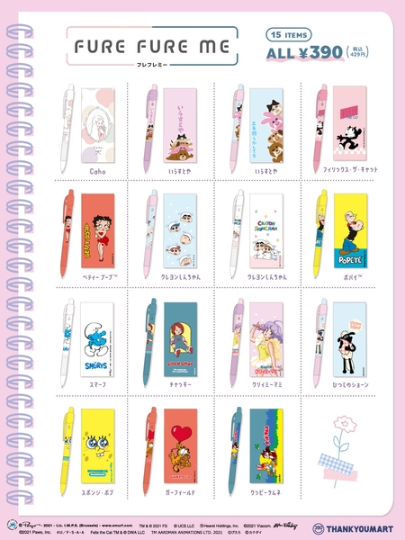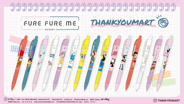 カワイイが集まる店内全品390円のショップ「サンキューマート」を運営するエルソニック株式会社は、バラエティあふれる13種類のキャラクターの限定デザインをまとった、ノックしなくても芯が出るシャープペンシル『フレフレミー』を8月26日(木)より入荷順次販売開始いたします。