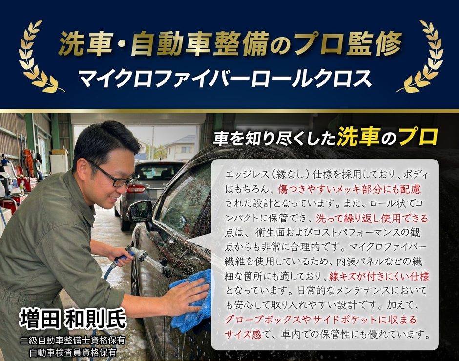 【累計販売5000個突破】あのヒット商品が車用に進化!自動車整備のプロが監修した「傷つけないエッジレス仕様」の『ロール型マイクロファイバークロス』がAmazonにて4月より販売開始