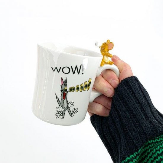 シンプルなフォルムのマグカップですが、目が飛び出したようなトムのデザインがキュート。しかも、持ち手部分にはジェリーのフィギュアが乗っかっています。ジェリーまで目が飛び出しちゃってますよ♪