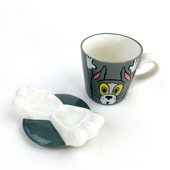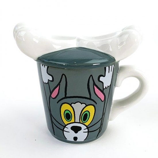 トムがカップの中にハマってしまったようなデザインの、マグカップ。フタ付きで、上にはトムの足が。。。くぼみがあるので、ティーバッグを置くこともできます。