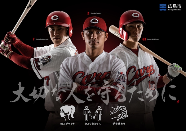 広島市は、新型コロナウイルス感染症拡大防止に係る啓発ポスターを作成しました。カープの選手にご協力いただき、同様の取り組みを行うのはこれが初めてとなります。
