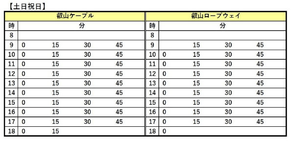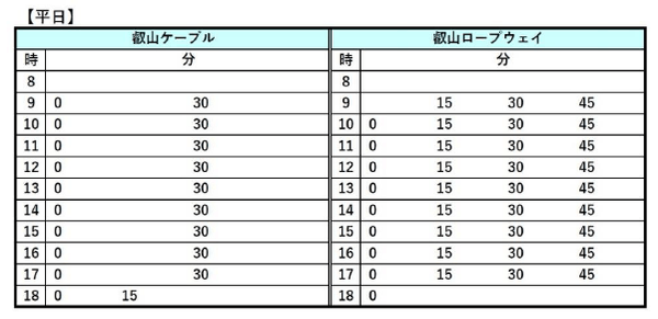 ※ケーブルカーとロープウェイは、上り・下り同時刻に発車します。