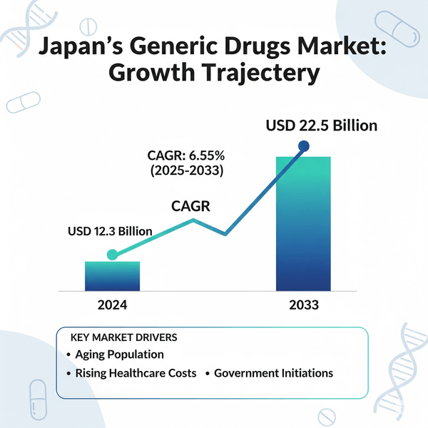 日本のジェネリック医薬品市場は2033年までに225億米ドルに達すると予想|年平均成長率6.55%