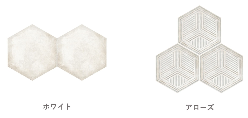 無添加住宅では初めて発売する六角形のタイル。アンティーク風の加工がされており、「経年美化」を売りにする無添加住宅にぴったりの商品です。