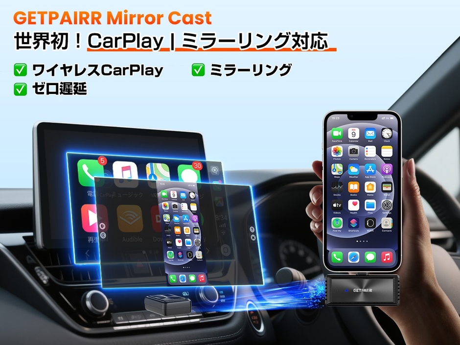 Amazon年末セール期間限定で、GetPairr の次世代ワイヤレスCarPlay/ミラーリングアダプター「Mirror Cast」が 特別価格40%OFF にて登場いたします。