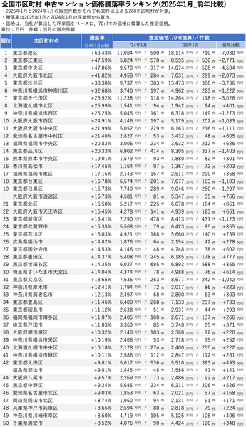 全国市区町村 中古マンション価格騰落率ランキング(2025年1月_前年比較)
