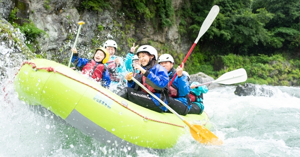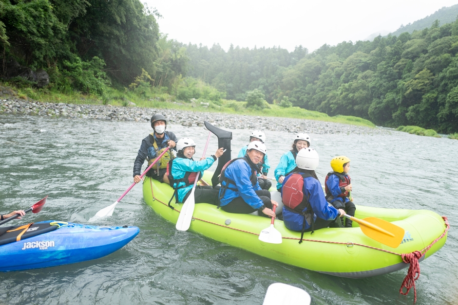 ラフティングボートを率いるのは、御岳渓谷でリバーアクティビティサービスを提供する「みたけレースラフティングクラブ」代表の柴田大吾さん。世界選手権2位の経歴を持つラフティングプランナーです。