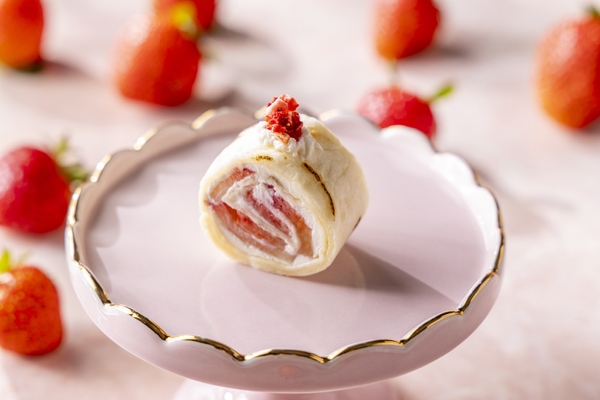 苺のフルーツサンドをイメージしセイボリーとしても楽しめるように仕立てたラップロール。苺の甘酸っぱさとクリームチーズのコクがやさしく溶け合う華やかな味わいです。