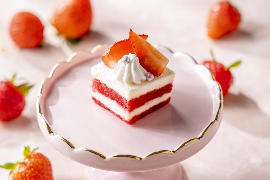 旬の苺が持つ甘酸っぱい魅力を多彩に表現したスイーツの数々には、苺のババロアとゼリーを2層に仕立てたグラスの上に、丸ごと苺のショートケーキを重ねたアイコニックなパフェをはじめ、練乳をスポイトでお好みに調整できる苺のマカロンや、ダージリンとホワイトチョコレートの香りが広がる苺のロールケーキなど、味わいと香りのバランスにこだわった7種のデザートが揃います。セイボリーは、苺と赤ワインビネガーが織りなす芳醇な香りがスモークダックの旨みを引き立てる一品や、苺とクリームチーズを巻いた華やかなラップロールなど、食事としても楽しめる6種をご用意。スコーンと紅茶やコーヒーとともに、優雅なティータイムをお過ごしください。