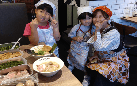 内容:スープ見学・麺ゆで体験・湯切り・トッピング・オリジナルラーメン試食