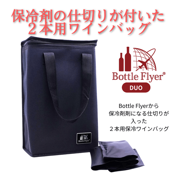【新発売】仕切りが保冷剤になる、ボトル2本用の保冷ワインバッグ Bottle Flyer DUO(ボトルフライヤー・デュオ)販売開始