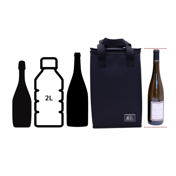 暑い夏のスポーツ観戦や、買ったワインや日本酒を保冷したまま持ち運びたい!そんなニーズに応えてこの度販売を開始するのが、仕切りが付いていて、常温ではジェル状の仕切りでボトルを守り、冷凍すれば保冷剤としてボトルを冷やしてくれるワインバッグBottle Flyer DUOです。背が高いので、アルザスボトルやマグナムボトルはもちろん、2Lのペットボトルも入れられるちょうどいいサイズ!また、中の仕切りは取り外して、形を変える事ができるので、ボトル以外にもお弁当やおつまみなども入れて冷やせるスグレモノです。