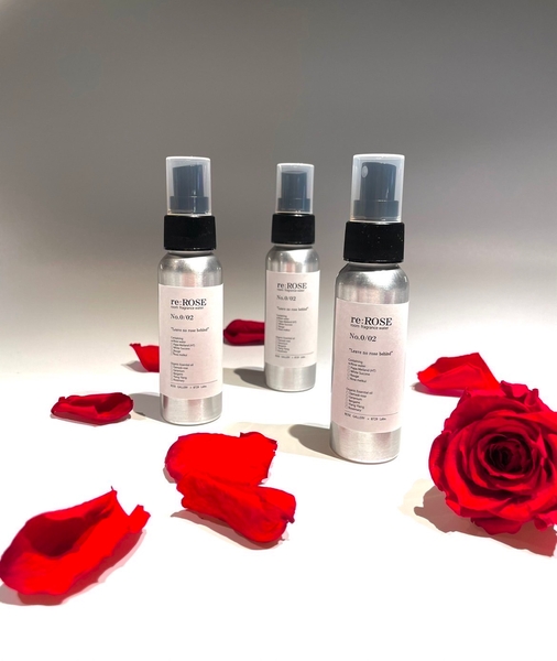 ”フラワーロス“となり廃棄される運命にあるバラよりローズウォーターを抽出し、約1,000輪分のバラを香りとしてボトルに詰めました。バラのいのちが暮らしを華やかに彩る香りにアップサイクルされ生まれ変わったフレグランスです。規格に満たないために市場に出荷することができず収入に繋がらないバラを適正な価格で買い取ることで、捨てられるいのちを救い、生産者さんの持続可能な生産を支援しています。