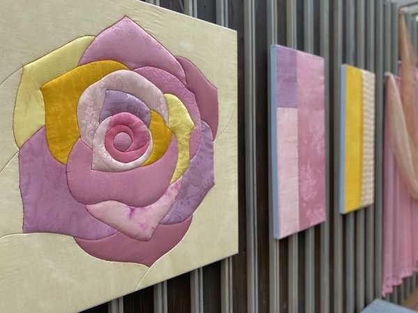 お花のいのちに向き合い、廃棄されてしまう花を一輪残さずアップサイクルして新たないのちの宿り先を生み出しています。今回の展示では、バラから抽出した染料で染め上げた布を用いて会場を装飾。布に宿る色彩のグラデーションとその美しさから、お花のいのちや、フラワーロスについて感じていただけたら幸いです。