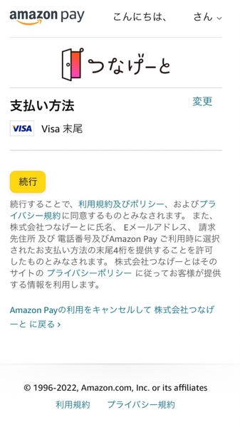 ■ つなげーと上でのAmazon Pay決済のご利用方法について