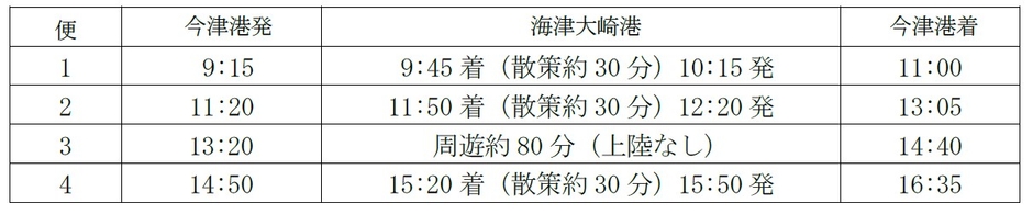 【上陸コース】1便・2便・4便、【周遊コース】3便