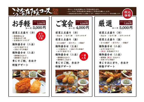 コース料理はご予約制です。事前にお申し付けください。