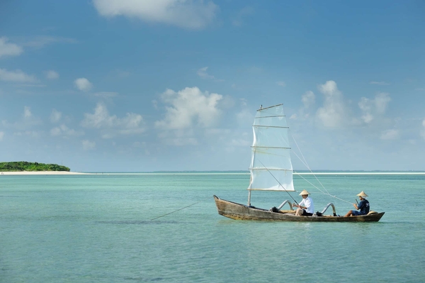 島の方々は昔、農業や生活のための民具を島に自生する植物から作っていました。また、米作りのため、伝統的な木造帆船「サバニ」に乗って近隣の島まで往復していた時代もあります。このように歴史・文化と深く結びつく民具やサバニを、竹富島の魅力として未来に残していきたいという思いから、当施設では民具づくりやサバニ操船のアクティビティを提供しています。いずれも島の方々と交流ができる体験です。開業当初から島の方々と話し合い、温かい協力をいただき、これまで体験を実施してきました。また、ダイニングやラウンジ、客室で民具を取り入れたり、1日1組限定の特別なサバニ操船アクティビティを企画したりと、今後も島の方々にご協力いただきながら伝統文化の魅力をお客様に伝えられるよう取り組みます。