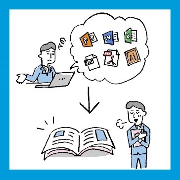 データ作成に手間や時間が取られ本来の業務が進まない課題に対し、当社が一括処理し1冊の印刷用データに仕上げます。