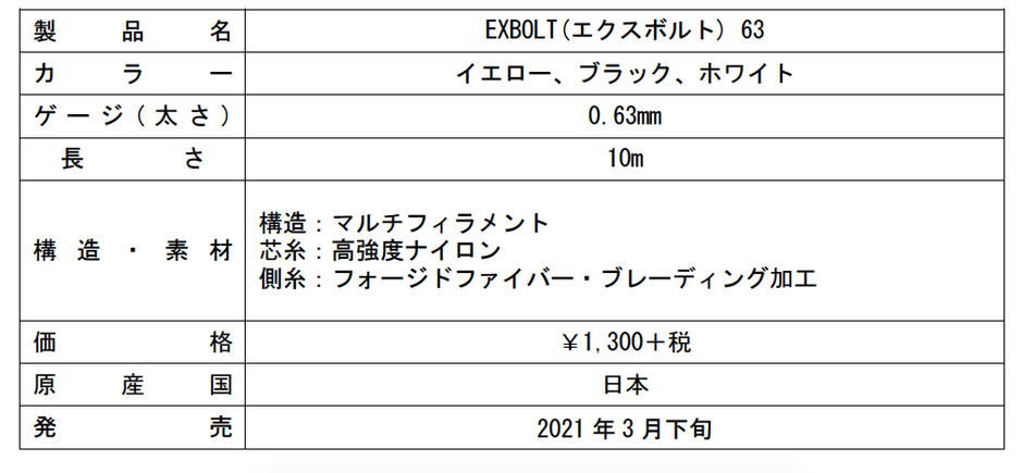 ヨネックス株式会社(代表取締役社長:林田草樹)は、独自開発素材の「フォージドファイバー」を使用し、反発力・耐久性・打球音を高めたバドミントンストリングの新シリーズ「EXBOLT(エクスボルト)63」を2021年3月下旬より発売いたします。