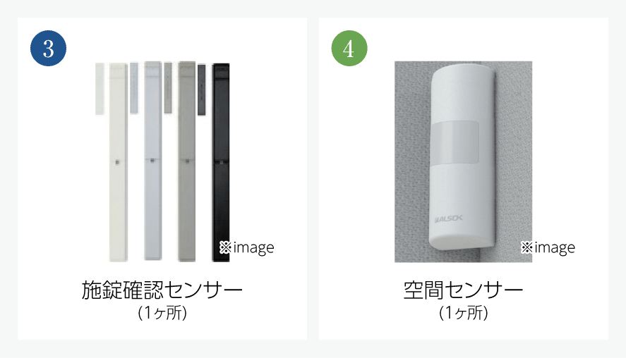 セット内容:警備ユニット1・施錠確認センサー1・空間センサー1・ALSOKライト1・ステッカー1
